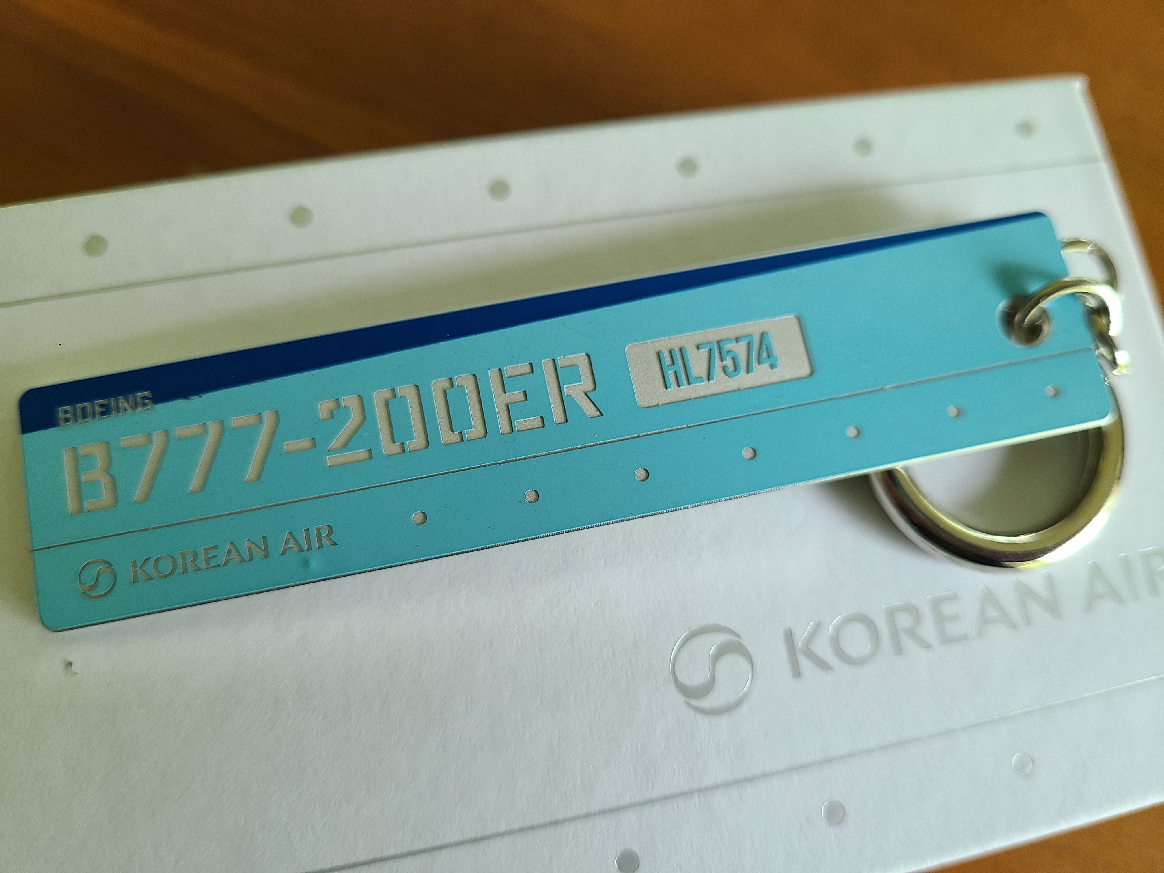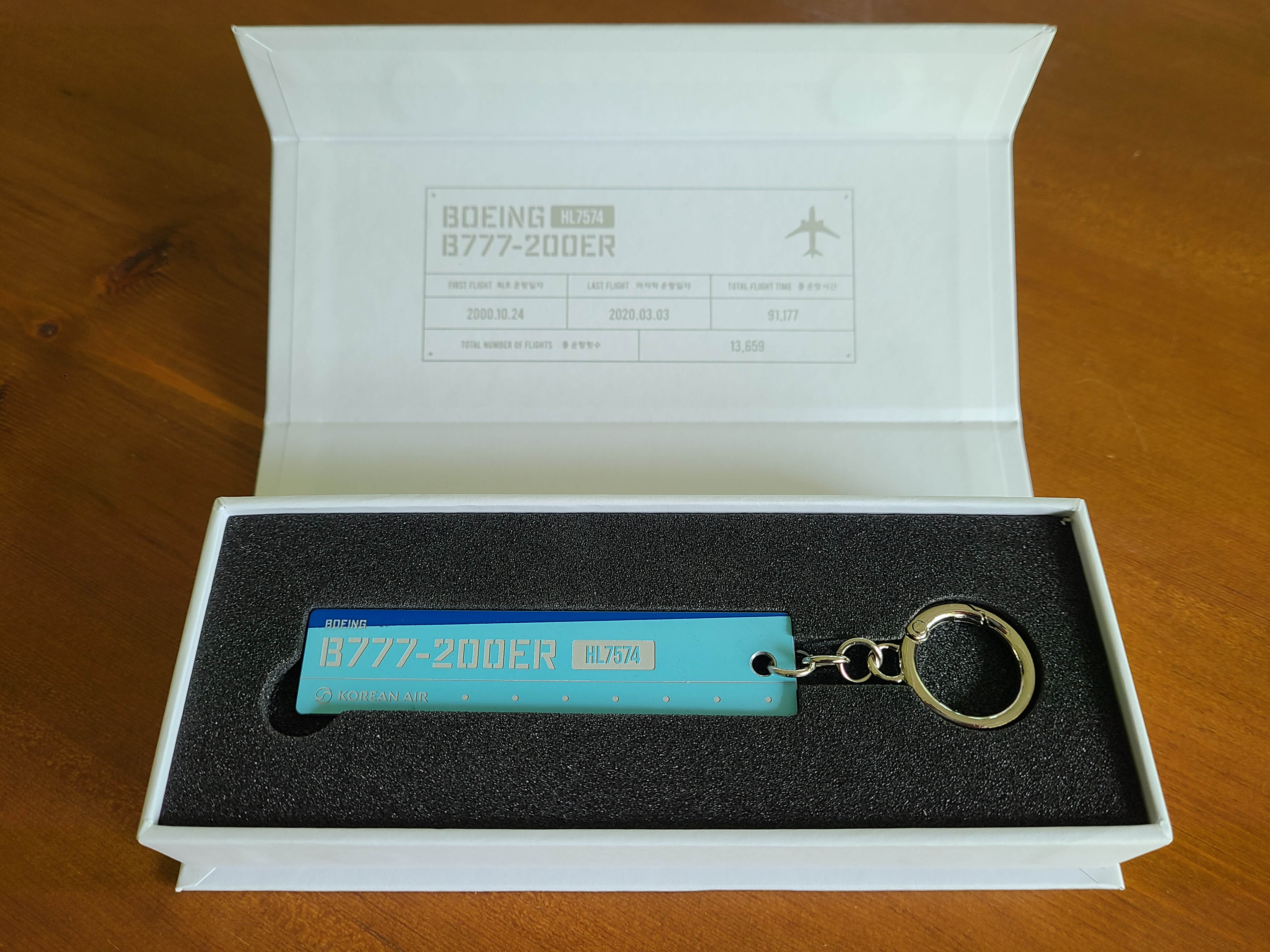 비행기 기종은 보잉의 B777-200ER 이며 등록부호는 HL7574, 2000년 10월 24일에 첫 운항을 하고 2020년 3월 3일에 마지막 비행을 했다고 한다. 나는 아마 이 비행기를 타 보지 못했을 것 같다. 1년에 가까운 세계여행을 할 때 원월드의 5대륙 묶음 항공권을 이용해 대한항공은 한 번도 타지 않았고 한국에서 동남아를 다녀오거나 제주에서 육지 다녀올 때에는 주로 저비용항공사를 이용하다 보니 대한항공 비행기를 탄 횟수 자체가 적다. 타 봤던 비행기의 일부라면 더 의미 있겠지만 그렇지 않다고 해도 절대 소유할 수 없는 대형 비행기의 -아주 작긴 하지만- 일부를 간직할 수 있다는 것은 비행기를 좋아하는 사람에게 특별한 의미로 다가온다.